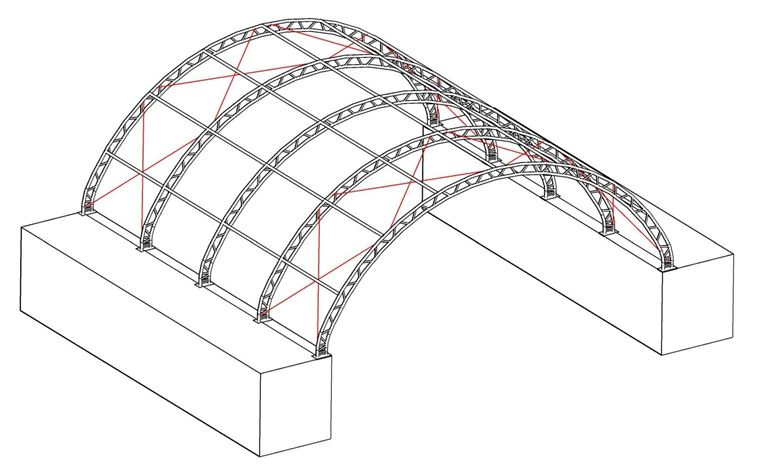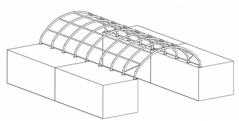 - Lift the assembled arches onto the base plates that have already been placed on you shipping containers.